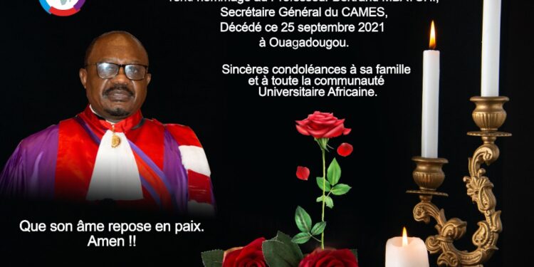 La CRUFAOCI rend un hommage au Professeur BERTRAND MBATCHI Secrétaire Général du CAMES et Secrétaire permanent de la CRUFAOCI décédé le 25 Septembre 2021.à OUAGADOUGOU. La Présidente de la CRUFAOCI, le Professeur TIDOU Abiba Sanogo Epse KONE voudrait adresser ses sincères condoléances à sa famille et à toute la communauté universitaire.